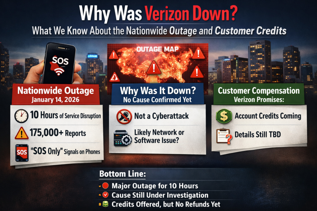 World/International News Why Was Verizon Down? Nationwide Outage Explained and Customer Credits January 15, 2026 HARE KRISHNA KUMAR KARN No Comments Why Was Verizon Down? What to Know About the Nationwide Outage and Customer Credits,Why Was Verizon Down? Nationwide Why Was Verizon Down? Nationwide A widespread Verizon outage left millions of…
