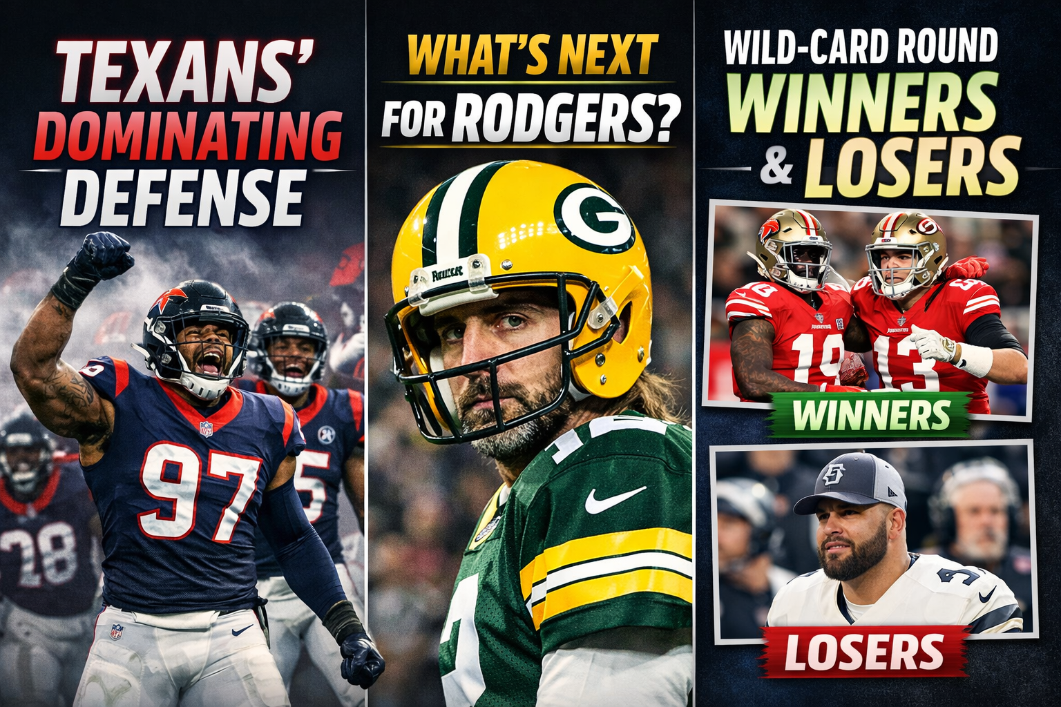 World/International News Texans’ Dominating Defense, What’s Next for Rodgers, and Wild-Card Round Winners and Losers January 13, 2026 HARE KRISHNA KUMAR KARN No Comments Texans’ Dominating Defense, What’s Next for Aaron Rodgers, and Wild-Card Round Winners and Losers The NFL Wild-Card Round delivered exactly what fans expect from playoff football—intensity, surprises, heartbreak, and moments…